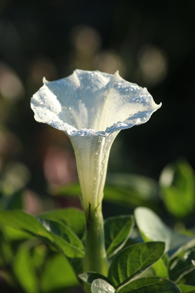 The mystical Moonflower, also known as Datura, blooms under the moonlight and exudes a mesmerizing fragrance. This nocturnal beauty symbolizes mystery and transformation, making it a rare delight for those who encounter its alluring petals.